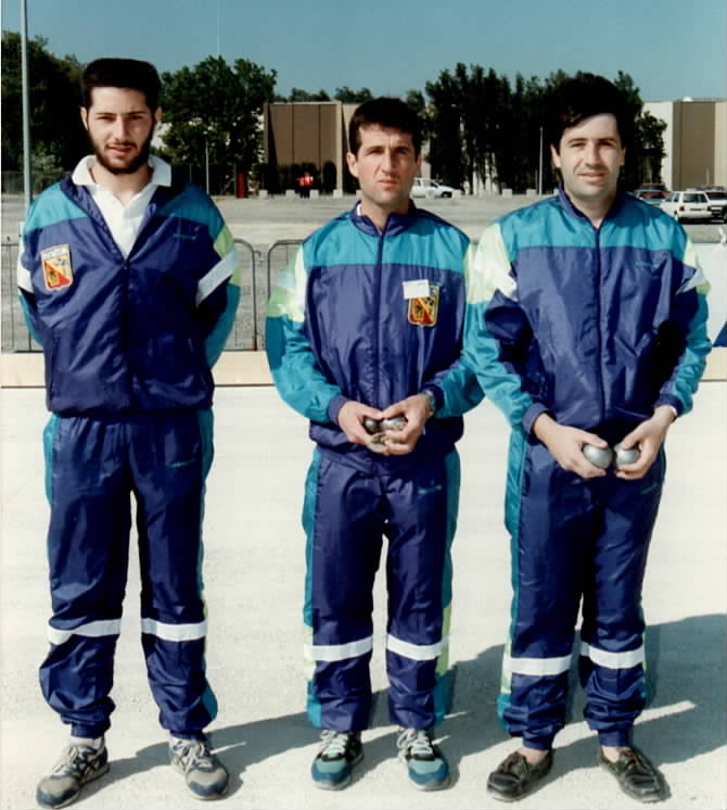 Pour la formation Costes – Costes – Souyri, ce Championnat de Ligue Midi-Pyrénées a valeur de test avant le grand rendez-vous de la semaine suivante, à savoir le Championnat de France en Avignon. C’est le parking du Stadium de Toulouse qui accueille cette Ligue 1991. Les Villefranchois arrivent à sortir d’une poule compliquée où figurent notamment les Lotois Jacky Lacoste et Christian Enocq, tout récents vice-champions de France doublettes, ou encore la triplette tarn-et-garonnaise emmenée par un certain Thierry Binet, transfuge du département de Loire-Atlantique sous les couleurs duquel il avait revêtu les couleurs bleu-blanc-rouge en 1984. Malgré une défaite en première partie, les sociétaires de la Pétanque Villefranchoise parvenons finalement à sortir de poule sur des terrains bitumés particulièrement sélectifs. La partie après poules, autant dire les 16e de finale, aurait du être une formalité contre une équipe lotoise largement à leur portée. Un coup de moins bien à l’appoint en décida finalement autrement. Jusqu’à ce que Dominique Souyri prenne les choses en mains. Passé au point devant, il se chargea en effet de remettre de l’ordre dans la maison aveyronnaise. Et de permettre aux siens de se qualifier pour les 8e de finales du dimanche matin.